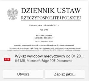wykazu wyrobów medycznych wydawanych na zlecenie od 01 2024r.